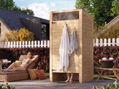 Sie suchen nach einer stilvollen Outdoor Dusche für Ihren Garten? Eine gute Idee! Ob zur praktischen Abkühlung an heißen Sommertagen, als stilvolle Ergänzung zum Pool (Pool-Dusche) oder als erfrischendes Highlight nach einem Saunagang – mit einer Gartendusche werten Sie Ihre persönliche Wohlfühloase im Freien deutlich auf! Im Sortiment der Gartenhausfabrik finden Sie Außenduschkabinen und Außenduschsysteme, die durch hochwertige Materialien und ansprechendes Design überzeugen.